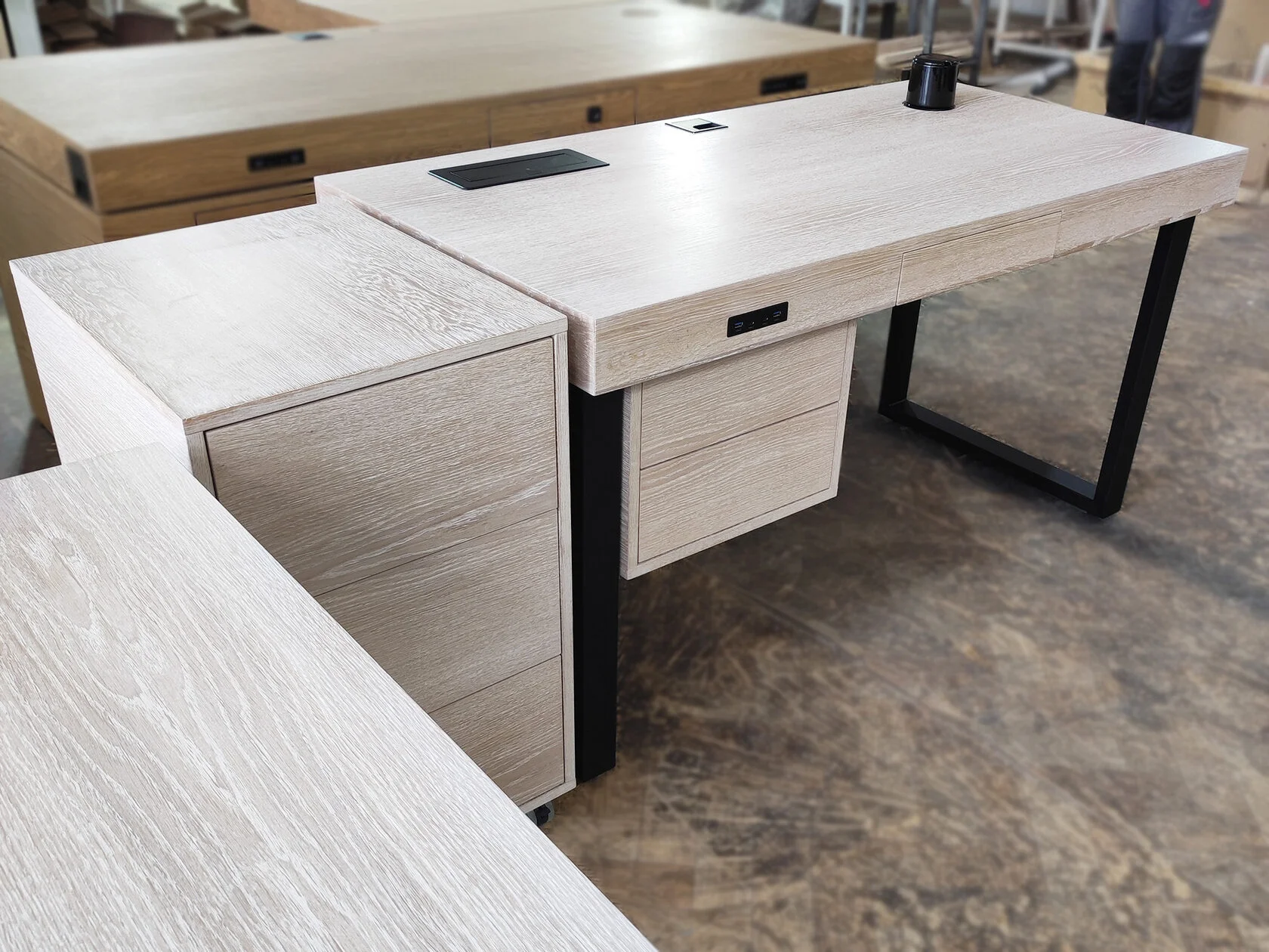 Idellion — премиальные кастомные рабочие столы с регулировкой высоты из массива и шпона. Индивидуальные размеры, отделки, электрика, аксессуары и интеграция под интерьер клиента (B2C и B2B).